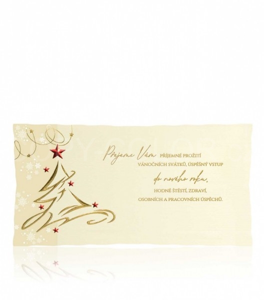 Základní novoročenka je BEZ TEXTU - Ukázkový text na grafickém znázornění slouží pouze jako ilustrace a není součástí ceny přání. Vyberte si variantu s potiskem a nechte si na novoročenku přidat vlastní text a logo – na přední i vnitřní stranu, přesně podle vašeho přání.